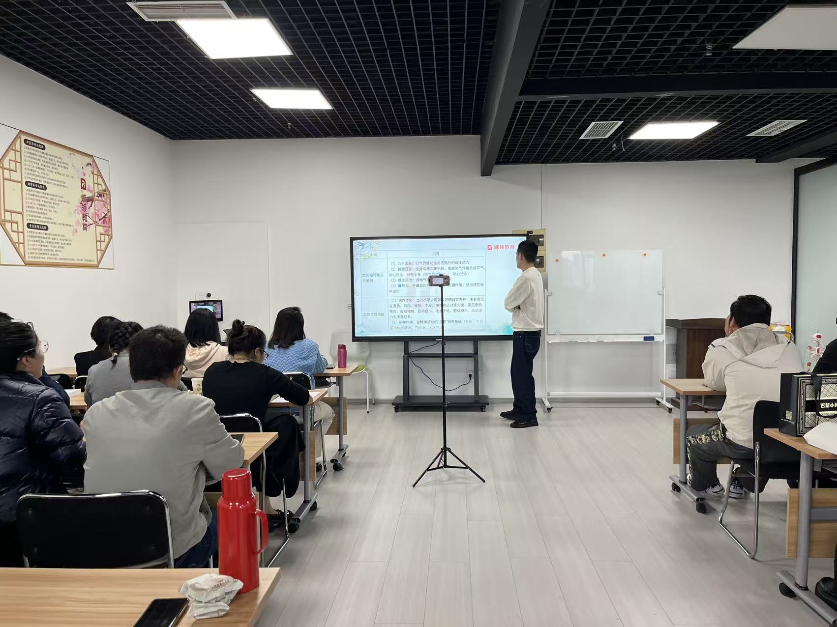 “气血津液是生命活动的基础,其失衡是百病之源。” 向老师开篇便点出核心,结合临床常见的气血亏虚证讲解:“产后女性多有‘气能生血’不足之证,表现为乏力、面色苍白,需用黄芪、当归配伍,正是遵循‘气为血之帅’的原理。” 针对学员易混淆的津与液,他以实际病例区分:“秋季燥咳多为津伤,需用沙参、麦冬润肺生津;而老年关节僵硬则是液亏,必加熟地、枸杞濡养骨髓。” 同时强调气机失调的诊疗关键:“肝气郁结导致的胁痛属气滞,用柴胡疏肝散;胃下垂伴久泻是气陷,补中益气汤升举阳气立效。”